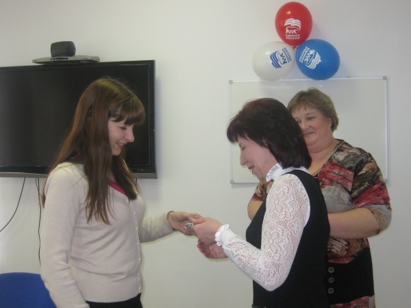 Секретарь местного отделения партии «Единая Россия» Козельского района Елена Слабова и заместитель секретаря местного отделения Маргарита Кавочкина вместе с партийными билетами вручили нагрудные значки партии «Единая Россия», поздравили новых партийцев с этим знаменательным событием, пожелали им дальнейшего проявления активности и плодотворной деятельности в укреплении авторитета партии «Единая Россия».